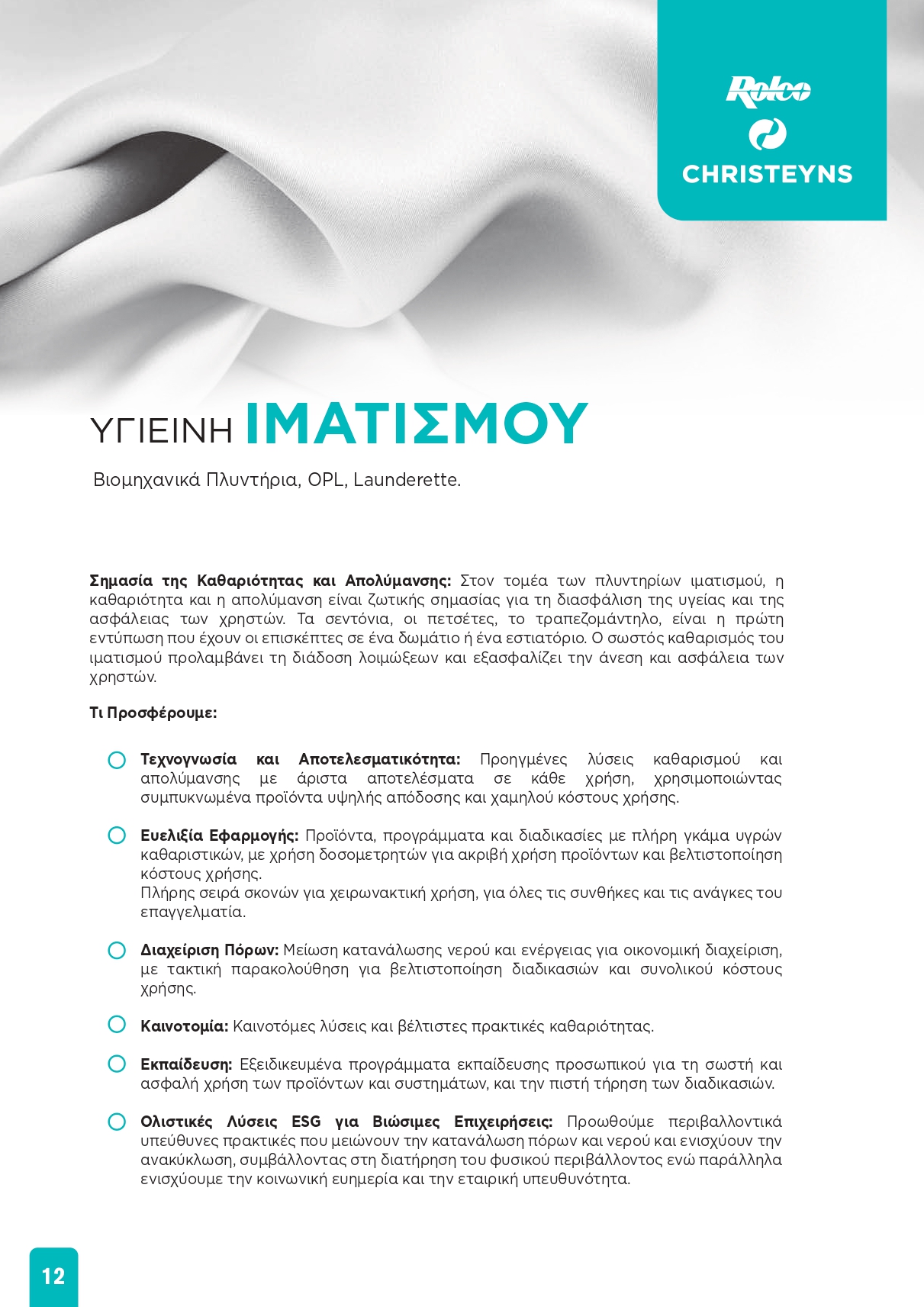 Απορρυπαντικά και απολυμαντικά προϊόντα υψηλής αποτελεσματικότητας και εξοπλισμός για βιομηχανικά πλυντήρια και στεγνοκαθαριστήρια.