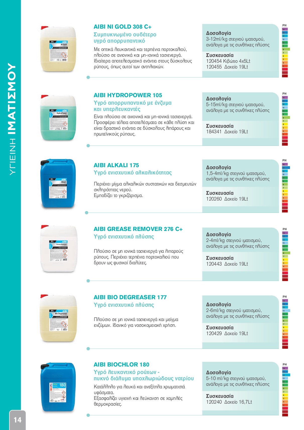 Προϊόντα επαγγελματικής υγιεινής για κουζίνες, δάπεδα, δωμάτια, υφάσματα και χέρια.